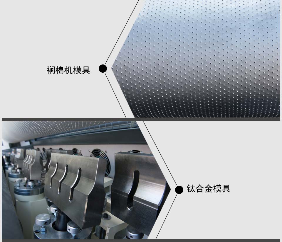 南方力勁汽車腳墊壓花機,超聲波模具采用鈦合金材料,鈦合金材料不但材料貴,且較難加工,致使超聲波鈦合金模具價格比超聲波鋁合金模具和普通超聲波鋼模高出了三至四倍。雖然鈦模價格較高,但其具有良好的音響傳導(dǎo)特性和抗拉伸強度,使超聲波裥棉機在持續(xù)工作的時候會具有良好的出力,以及發(fā)熱量小,不易爆裂,使整個機臺具有較好的穩(wěn)定性,適合汽車腳墊和加厚濾材的生產(chǎn)。